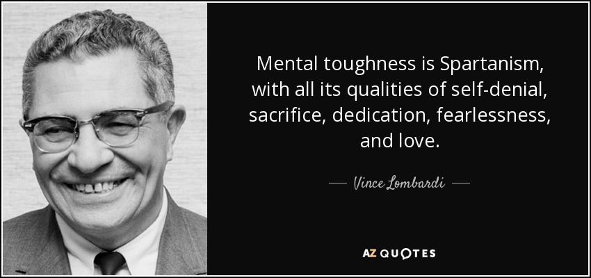 Mental toughness is Spartanism, with all its qualities of self-denial, sacrifice, dedication, fearlessness, and love.