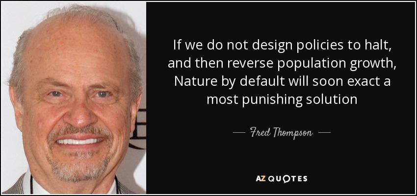 If we do not design policies to halt, and then reverse population growth, Nature by default will soon exact a most punishing solution