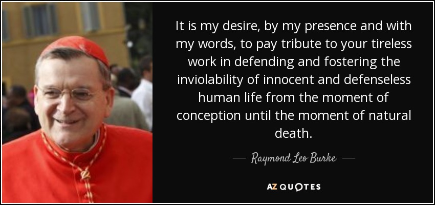 It is my desire, by my presence and with my words, to pay tribute to your tireless work in defending and fostering the inviolability of innocent and defenseless human life from the moment of conception until the moment of natural death.