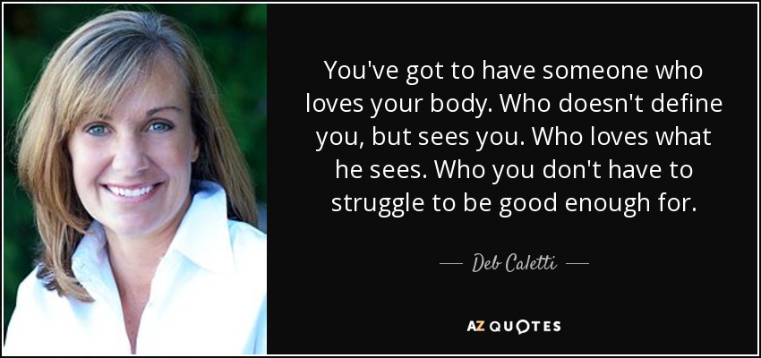You've got to have someone who loves your body. Who doesn't define you, but sees you. Who loves what he sees. Who you don't have to struggle to be good enough for.
