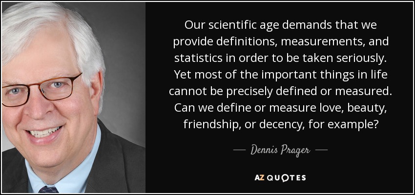 Our scientific age demands that we provide definitions, measurements, and statistics in order to be taken seriously. Yet most of the important things in life cannot be precisely defined or measured. Can we define or measure love, beauty, friendship, or decency, for example?