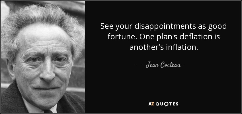 See your disappointments as good fortune. One plan's deflation is another's inflation.
