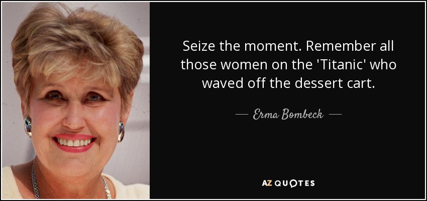 Seize the moment. Remember all those women on the 'Titanic' who waved off the dessert cart.