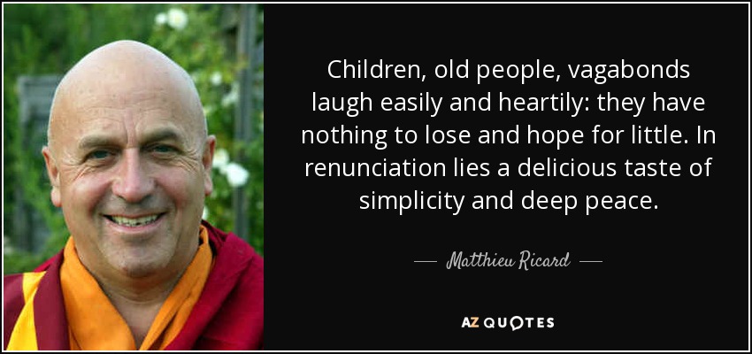 Children, old people, vagabonds laugh easily and heartily: they have nothing to lose and hope for little. In renunciation lies a delicious taste of simplicity and deep peace.
