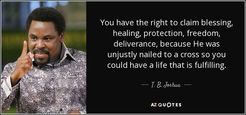 You have the right to claim blessing, healing, protection, freedom, deliverance, because He was unjustly nailed to a cross so you could have a life that is fulfilling.