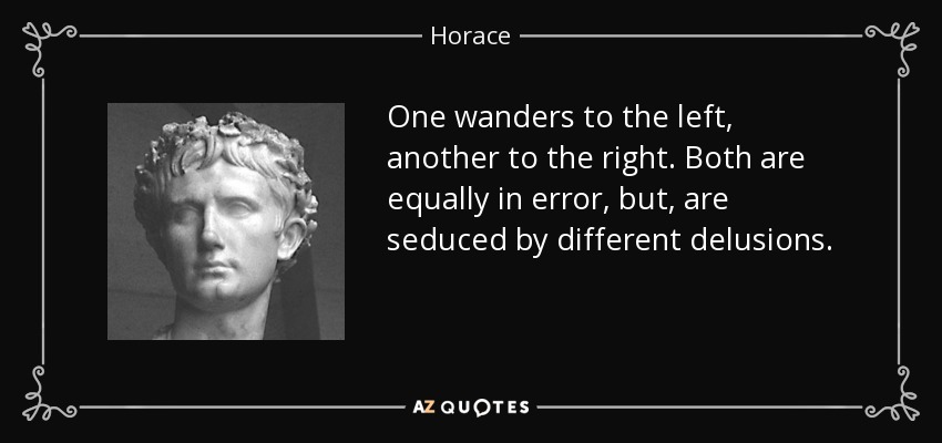 One wanders to the left, another to the right. Both are equally in error, but, are seduced by different delusions.