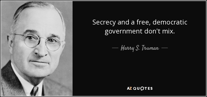 Secrecy and a free, democratic government don't mix.
