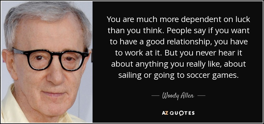 You are much more dependent on luck than you think. People say if you want to have a good relationship, you have to work at it. But you never hear it about anything you really like, about sailing or going to soccer games.