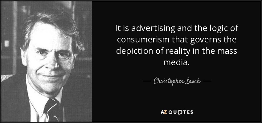 It is advertising and the logic of consumerism that governs the depiction of reality in the mass media.