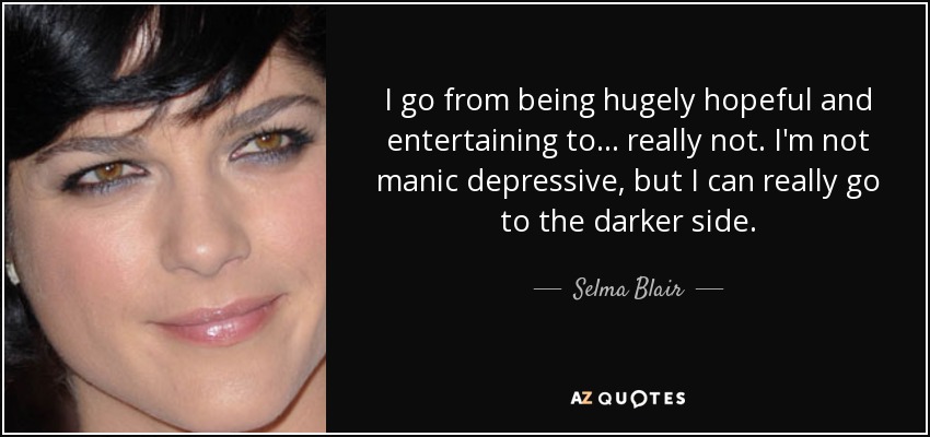 If you're manic-depressive and you're functioning in this world and doing it all well, I think, wow, you should be proud of being able to say, this is what I'm getting through right now.