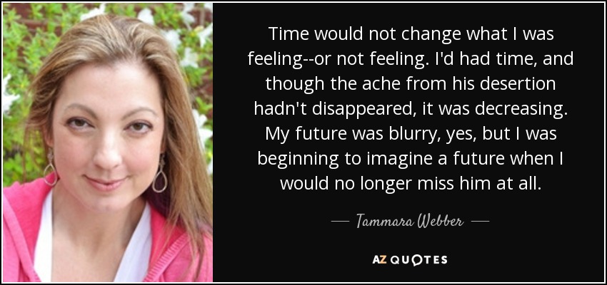 Time would not change what I was feeling--or not feeling. I'd had time, and though the ache from his desertion hadn't disappeared, it was decreasing. My future was blurry, yes, but I was beginning to imagine a future when I would no longer miss him at all.