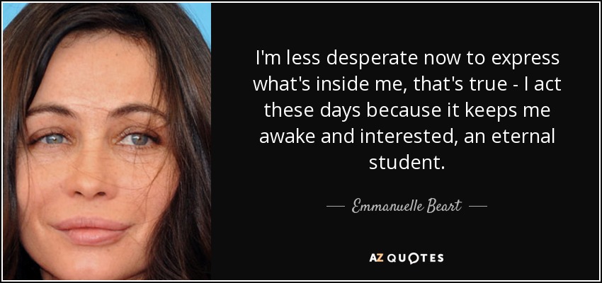 I'm less desperate now to express what's inside me, that's true - I act these days because it keeps me awake and interested, an eternal student.