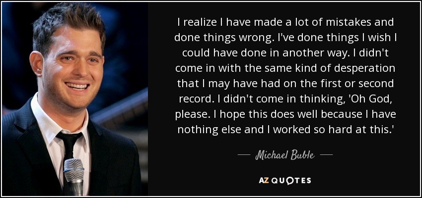 I realize I have made a lot of mistakes and done things wrong. I've done things I wish I could have done in another way. I didn't come in with the same kind of desperation that I may have had on the first or second record. I didn't come in thinking, 'Oh God, please. I hope this does well because I have nothing else and I worked so hard at this.'