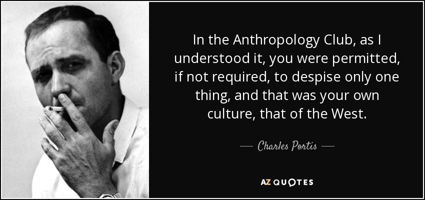 In the Anthropology Club, as I understood it, you were permitted, if not required, to despise only one thing, and that was your own culture, that of the West.