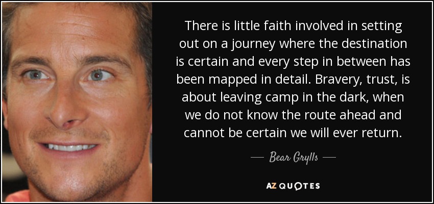 There is little faith involved in setting out on a journey where the destination is certain and every step in between has been mapped in detail. Bravery, trust, is about leaving camp in the dark, when we do not know the route ahead and cannot be certain we will ever return.
