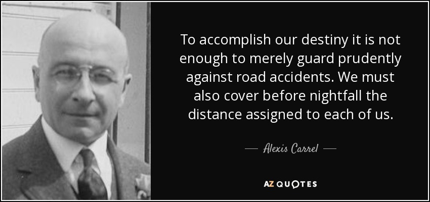 To accomplish our destiny it is not enough to merely guard prudently against road accidents. We must also cover before nightfall the distance assigned to each of us.