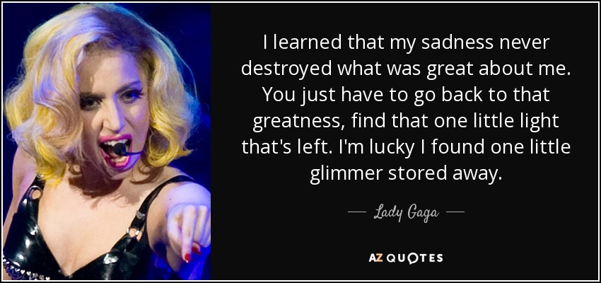 I learned that my sadness never destroyed what was great about me. You just have to go back to that greatness, find that one little light that's left. I'm lucky I found one little glimmer stored away.