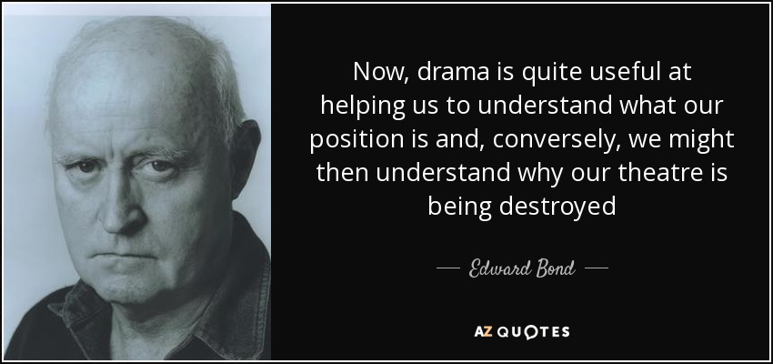 Now, drama is quite useful at helping us to understand what our position is and, conversely, we might then understand why our theatre is being destroyed