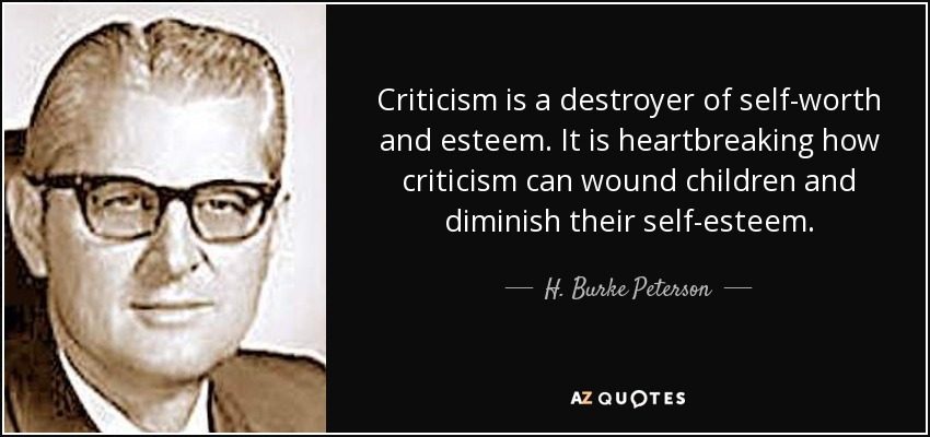 Criticism is a destroyer of self-worth and esteem. It is heartbreaking how criticism can wound children and diminish their self-esteem.