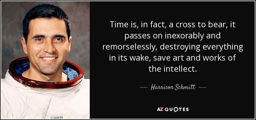 Time is, in fact, a cross to bear, it passes on inexorably and remorselessly, destroying everything in its wake, save art and works of the intellect.