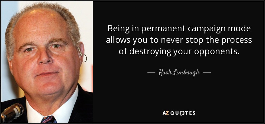 Being in permanent campaign mode allows you to never stop the process of destroying your opponents.