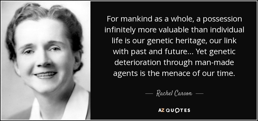 For mankind as a whole, a possession infinitely more valuable than individual life is our genetic heritage, our link with past and future... Yet genetic deterioration through man-made agents is the menace of our time.