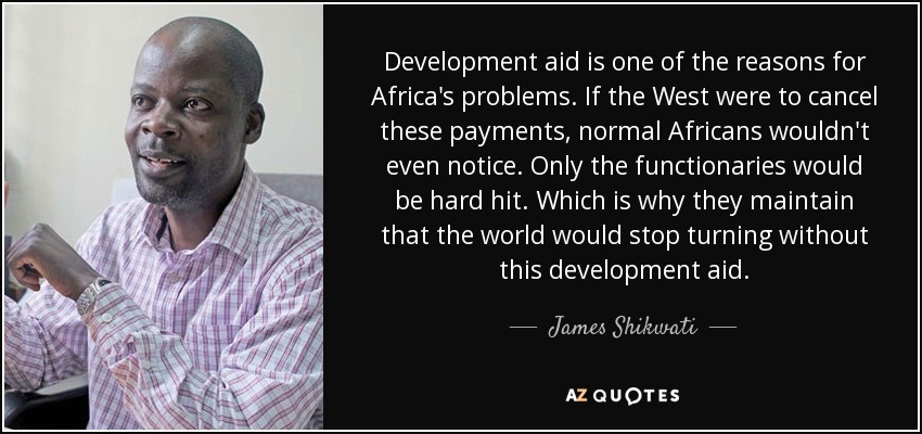 Development aid is one of the reasons for Africa's problems. If the West were to cancel these payments, normal Africans wouldn't even notice. Only the functionaries would be hard hit. Which is why they maintain that the world would stop turning without this development aid.