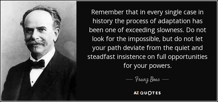 Remember that in every single case in history the process of adaptation has been one of exceeding slowness. Do not look for the impossible, but do not let your path deviate from the quiet and steadfast insistence on full opportunities for your powers.