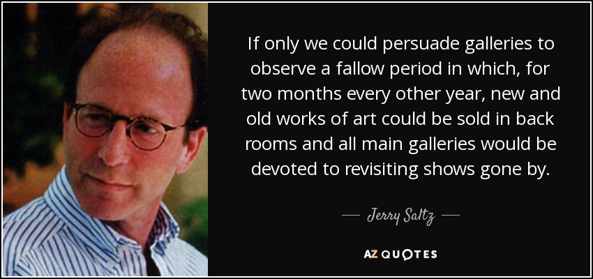 If only we could persuade galleries to observe a fallow period in which, for two months every other year, new and old works of art could be sold in back rooms and all main galleries would be devoted to revisiting shows gone by.