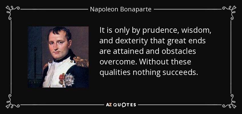 It is only with prudence, sagacity, and much dexterity that great aims are accomplished, and all obstacles surmounted. Otherwise nothing is accomplished.
