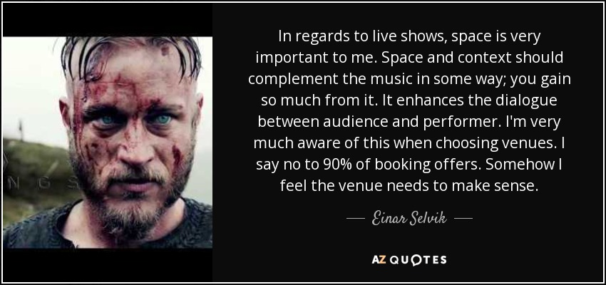 In regards to live shows, space is very important to me. Space and context should complement the music in some way; you gain so much from it. It enhances the dialogue between audience and performer. I'm very much aware of this when choosing venues. I say no to 90% of booking offers. Somehow I feel the venue needs to make sense.