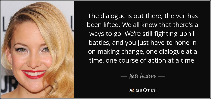 The dialogue is out there, the veil has been lifted. We all know that there's a ways to go. We're still fighting uphill battles, and you just have to hone in on making change, one dialogue at a time, one course of action at a time.
