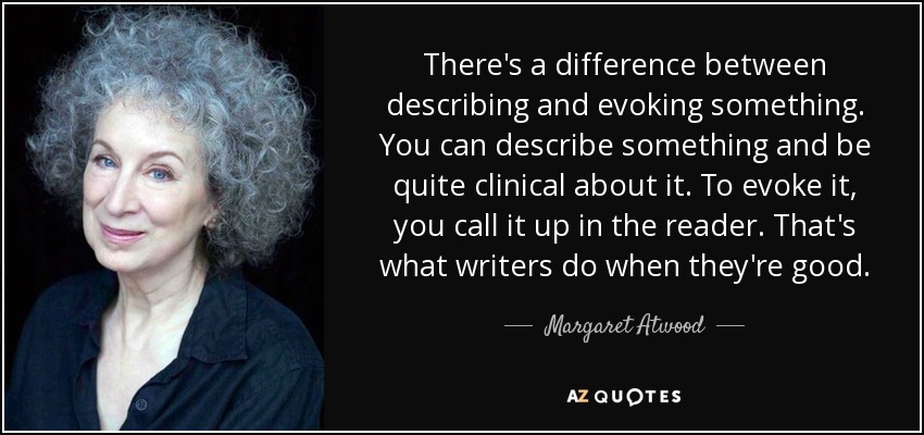 There's a difference between describing and evoking something. You can describe something and be quite clinical about it. To evoke it, you call it up in the reader. That's what writers do when they're good.
