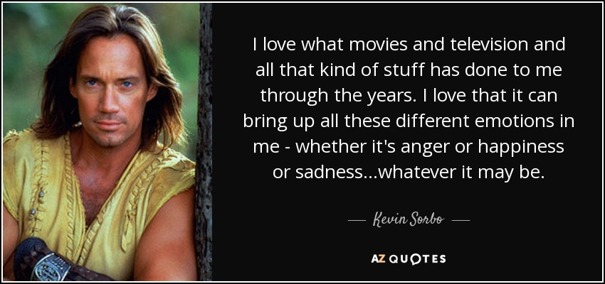 I love what movies and television and all that kind of stuff has done to me through the years. I love that it can bring up all these different emotions in me - whether it's anger or happiness or sadness...whatever it may be.