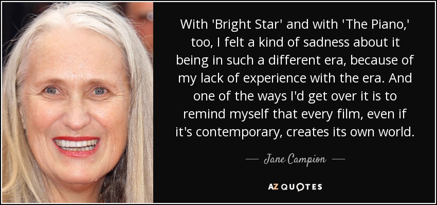 With 'Bright Star' and with 'The Piano,' too, I felt a kind of sadness about it being in such a different era, because of my lack of experience with the era. And one of the ways I'd get over it is to remind myself that every film, even if it's contemporary, creates its own world.