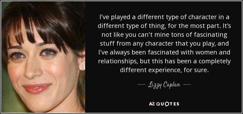 I've played a different type of character in a different type of thing, for the most part. It's not like you can't mine tons of fascinating stuff from any character that you play, and I've always been fascinated with women and relationships, but this has been a completely different experience, for sure.