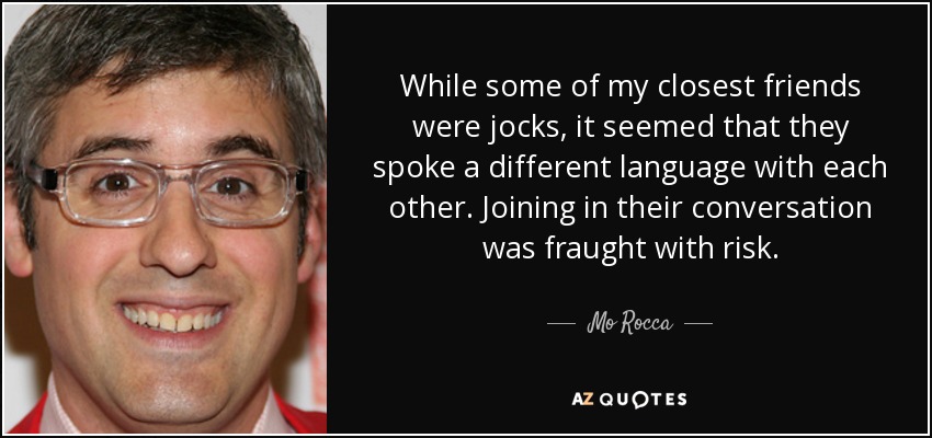 While some of my closest friends were jocks, it seemed that they spoke a different language with each other. Joining in their conversation was fraught with risk.