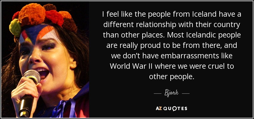 I feel like the people from Iceland have a different relationship with their country than other places. Most Icelandic people are really proud to be from there, and we don’t have embarrassments like World War II where we were cruel to other people.