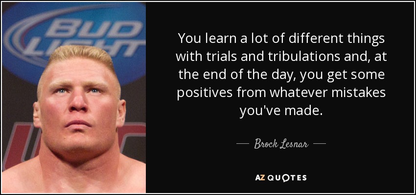 You learn a lot of different things with trials and tribulations and, at the end of the day, you get some positives from whatever mistakes you've made.