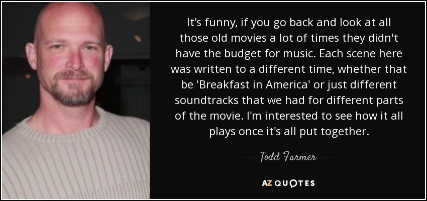 It's funny, if you go back and look at all those old movies a lot of times they didn't have the budget for music. Each scene here was written to a different time, whether that be 'Breakfast in America' or just different soundtracks that we had for different parts of the movie. I'm interested to see how it all plays once it's all put together.