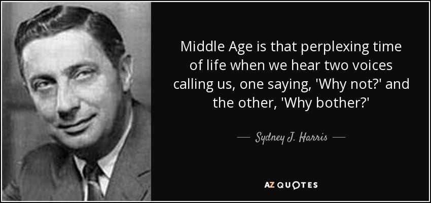 Middle Age is that perplexing time of life when we hear two voices calling us, one saying, 'Why not?' and the other, 'Why bother?'