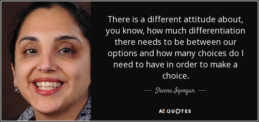 There is a different attitude about, you know, how much differentiation there needs to be between our options and how many choices do I need to have in order to make a choice.
