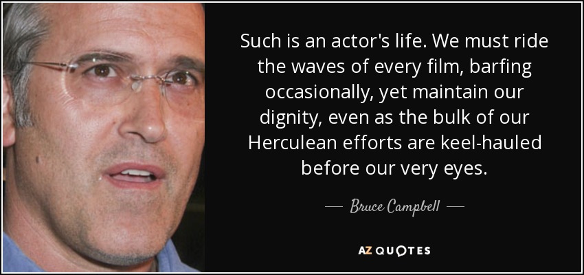 Such is an actor's life. We must ride the waves of every film, barfing occasionally, yet maintain our dignity, even as the bulk of our Herculean efforts are keel-hauled before our very eyes.