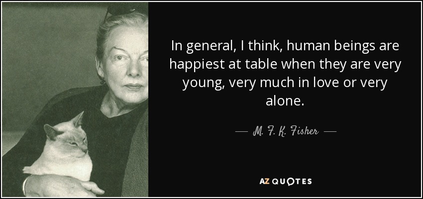 In general, I think, human beings are happiest at table when they are very young, very much in love or very alone.