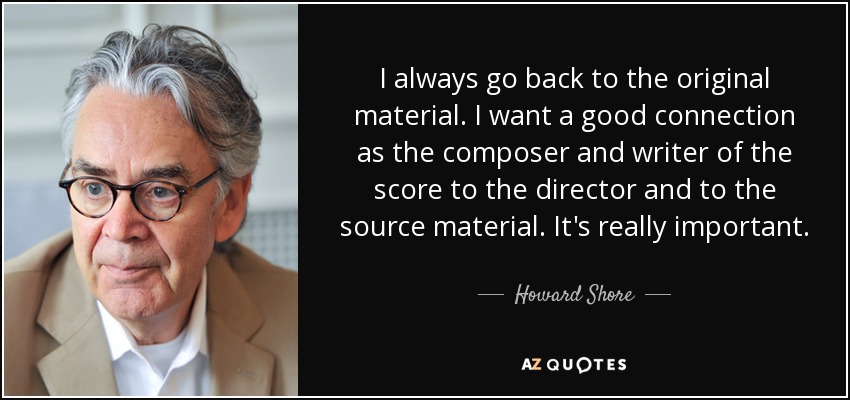 I always go back to the original material. I want a good connection as the composer and writer of the score to the director and to the source material. It's really important.