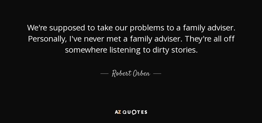 We're supposed to take our problems to a family adviser. Personally, I've never met a family adviser. They're all off somewhere listening to dirty stories.