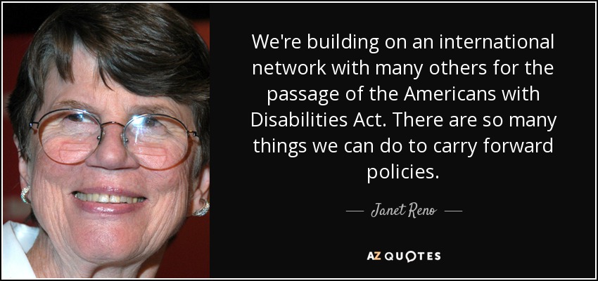 We're building on an international network with many others for the passage of the Americans with Disabilities Act. There are so many things we can do to carry forward policies.