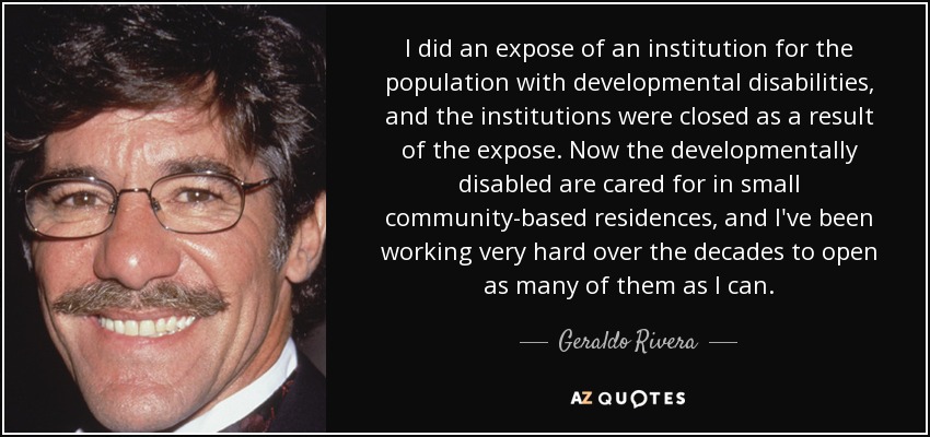 I did an expose of an institution for the population with developmental disabilities, and the institutions were closed as a result of the expose. Now the developmentally disabled are cared for in small community-based residences, and I've been working very hard over the decades to open as many of them as I can.