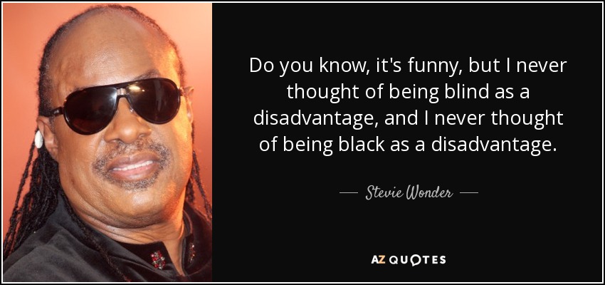 Do you know, it's funny, but I never thought of being blind as a disadvantage, and I never thought of being black as a disadvantage.