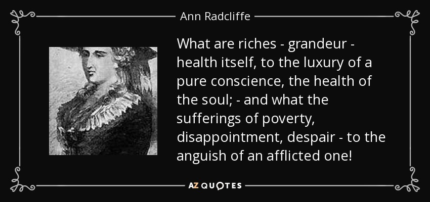 What are riches - grandeur - health itself, to the luxury of a pure conscience, the health of the soul; - and what the sufferings of poverty, disappointment, despair - to the anguish of an afflicted one!